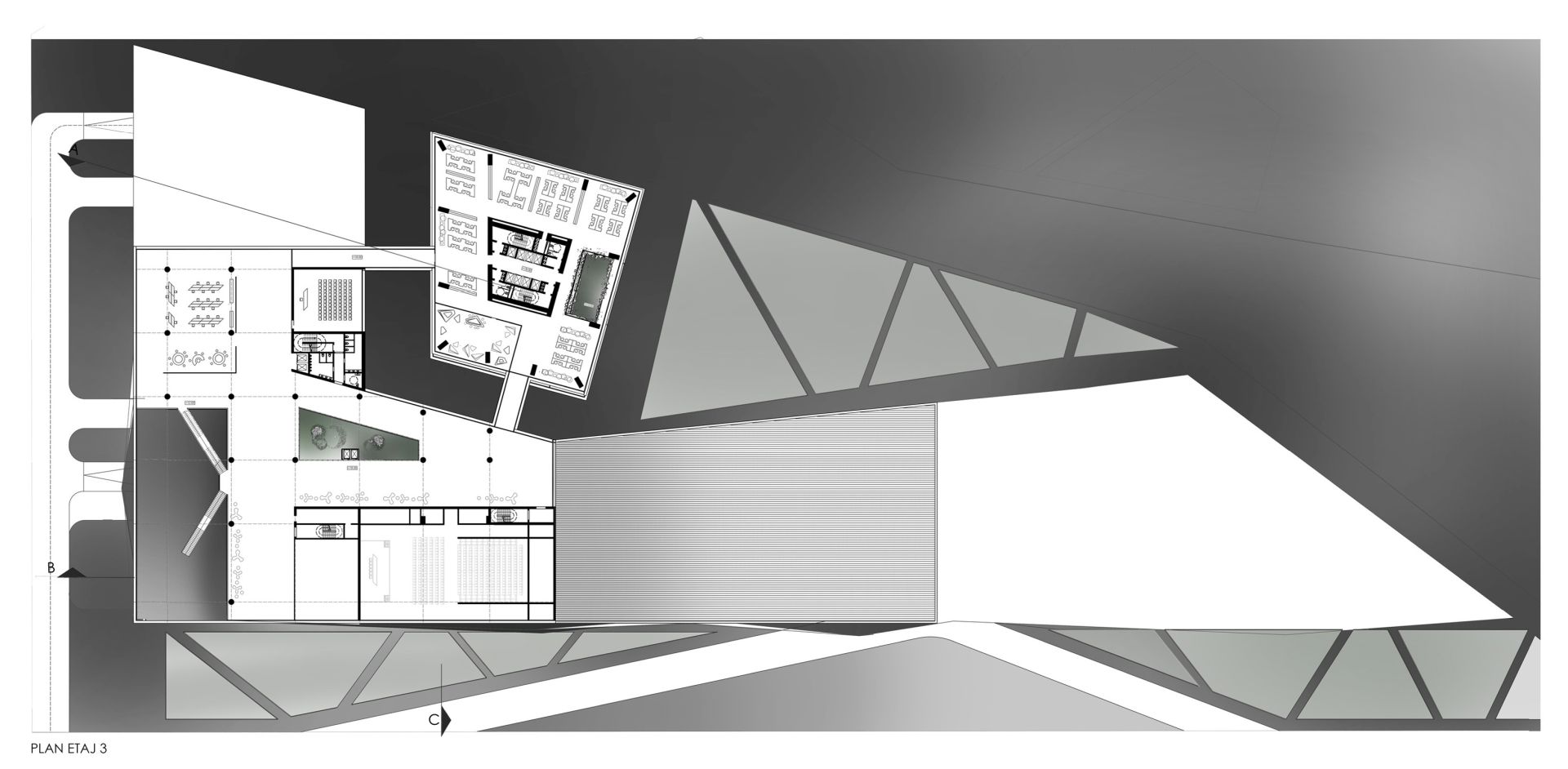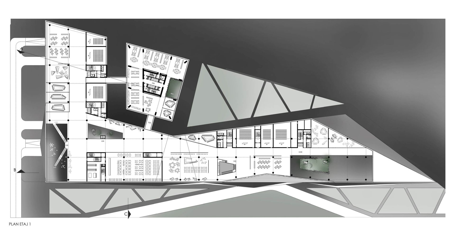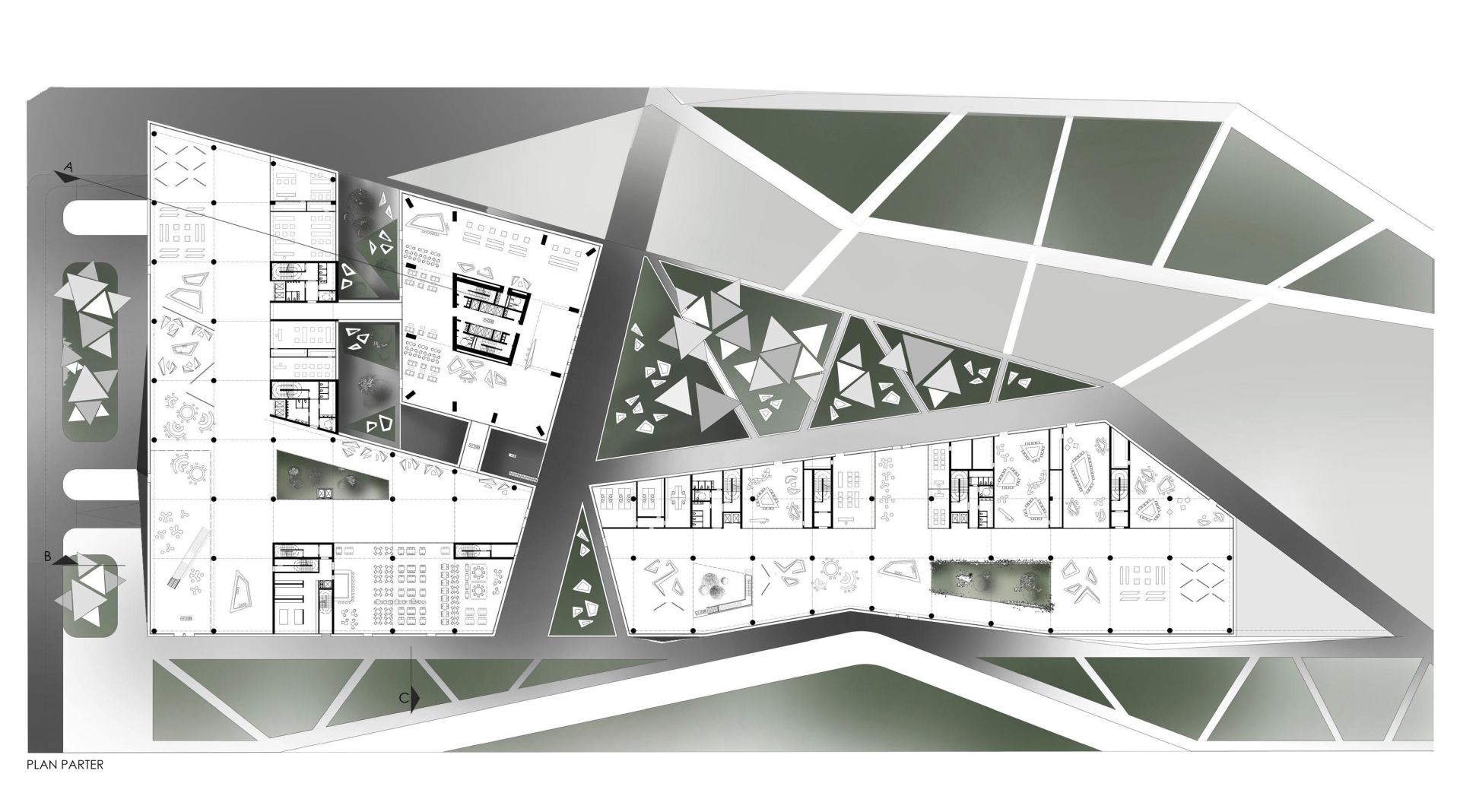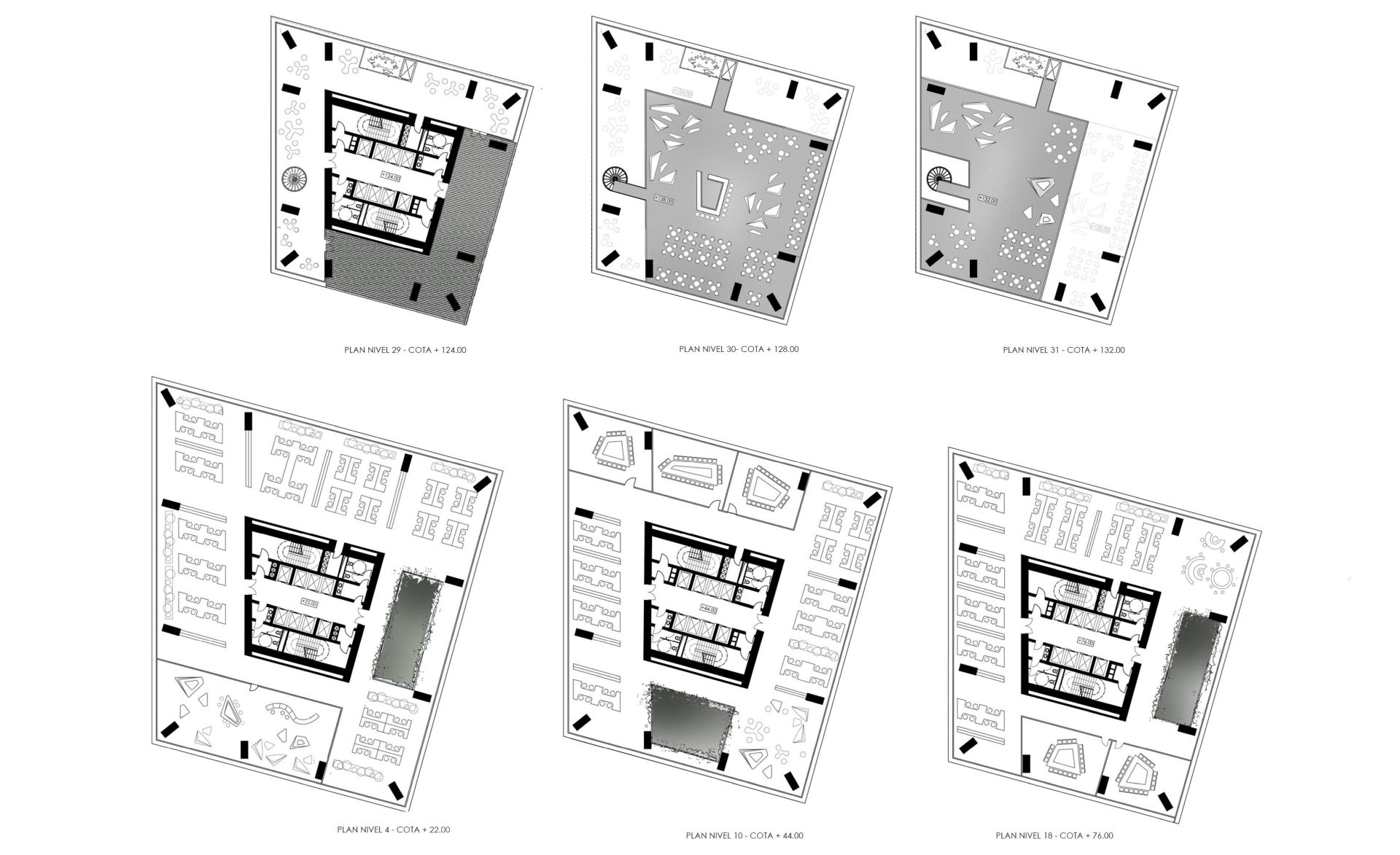 Soluția propusă urmărește conturarea spațiului liber, formând o limită-reper pe Bulevardul luliu Maniu și lăsând o deschidere către Bulevardul Vasile Milea și către partea centrală a orașului, marcându-se, astfel, un spațiu permeabil și accesibil, adaptat scării umane, având comunicare permamentă cu parterele destinate spațiilor publice și comerciale. Astfel, ideea s-a concretizat prin realizarea prelungirilor celor două parcuri din vecinătate, prin tranziții lente ale regimelor de înălțime, urmărindu-se un sens ascendent, de la bază către vârf, cu etaje care se retrag succesiv, dominând verticalitatea turnului, manifestându-se ca un simbol și un element iconic la nivel macroteritorial. Aceste prelungiri – extensii ale parcurilor la nivelul cladirilor creeaza terase circulabile si spatii accesibile pietonilor.